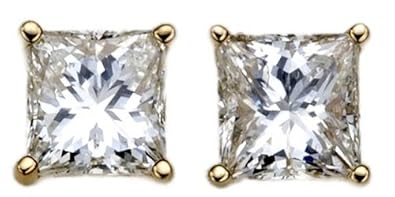 Beautiful IGI Certified 18k Gold Princess-Cut 4-Prong Diamond Stud Earrings