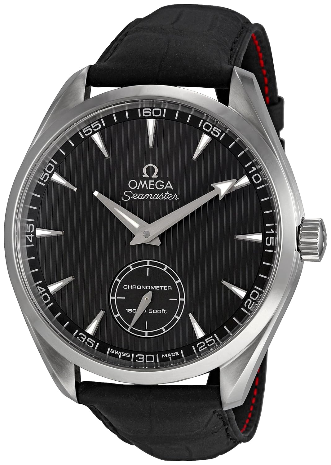 Stainless steel case with a black croco-embossed leather strap. Fixed stainless steel bezel. Grey dial with luminous hands and index hour markers. Minute markers around the outer rim. Luminiscent hands and markers. Small seconds sub-dial above the 6 o'clock position. Self winding automatic movement. Scratch resistant sapphire crystal. Skeleton case back. Case diameter: 49.2 mm. Deployment clasp. Water resistant at 150 meters/ 500 feet. Functions: hours, minutes, seconds. Omega seamaster aqua terra xxl mens watch 23113491006001.